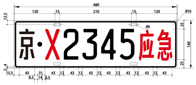 汽车号牌规格为480毫米×140毫米,摩托车号牌规格为220毫米×140毫米。