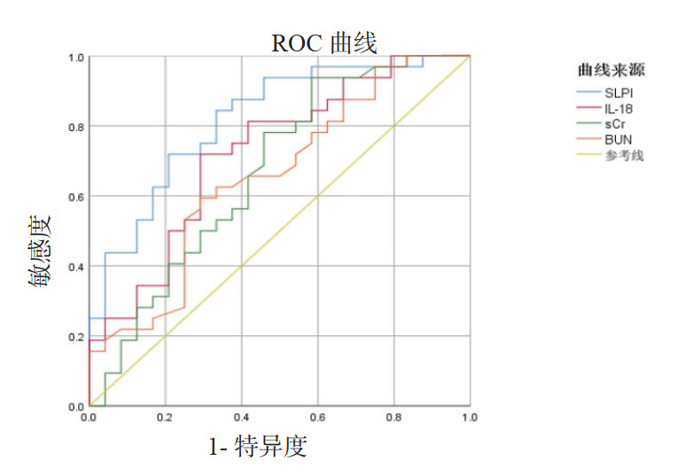 表 3 SLPI、IL-18、sCr、BUN对脓毒症患者发生AKI的预测价值 Table 3 Predictive value of SLPI, IL-18, sCr, and BUN for AKI in septic patients