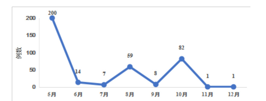 | 图 1 蜇伤月份分布情况 Fig 1 Monthly distribution of jellyfish stings |