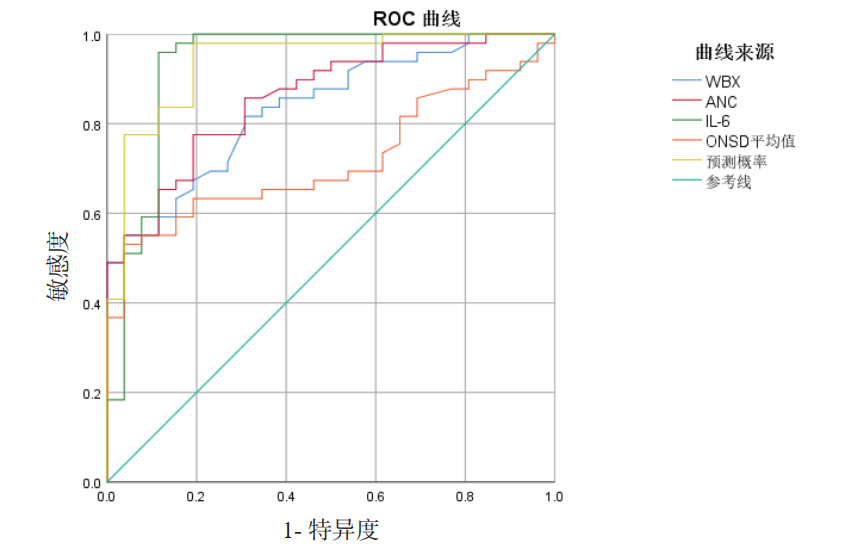 总之,本研究表明,ONSD联合全身炎症反应相关指标(WBC、IL-6等)对SICH患者神经功能预后具有较高的预测价值。联合检测可显著提高预测效能(AUC=0.939),为临床提供一种无创、简便的预后评估方法,有助于早期识别高危患者并采取相应的干预措施。