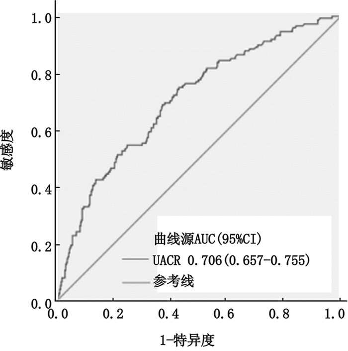 图 1 UACR预测AKI的ROC曲线 Figure 1 ROC curve of UACR for AKI |