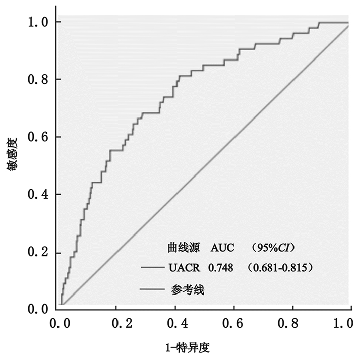 图 2 UACR预测重症AKI的ROC曲线 Figure 2 ROC curve of UACR for severe AKI |