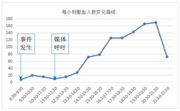 新媒体时代的信息传播具有传播速度快、传播范围广、公众参与多等特点。“一事一报”变成了全时报道,公众更快地掌握了事件的发展变化[6]。在“黄金4小时”媒体就可能将突发事件传播,发酵为有重大舆论影响的事件[7]。在突发事件的处置中,要赢得媒体认可,充分发挥媒体推动血液保障的正面作用[8-15]。“7·21”爆炸事故8:45发生,血液中心12:30通过官方微博、微信向外发布已向7家医院所收治的患者提供血液保障供应,呼吁A型和O型市民参于无偿献血,补充血液库存,部分媒体迅速通过新媒体转发了这条消息。2 h后主城区献血点开始陆续排队献血,相比传统媒体时代,汶川“5·12”地震和“7·5”公交纵火事件,献血高峰分别提前24 h、48 h,给采供血机构应对的反应时间相当有限。因此,在新媒体时代,采供血机构应当在发布信息的同时就要做好预判,提前预估即将面临的献血者服务的需求,及时做好应急安排。