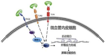 高迁移率族蛋白1(HMGB1)是细胞核转录因子,因HMGB1的产生明显晚于其他介质,且持续时间较长,也被称作脓毒症的“晚期”介质[4],针对HMGB1的治疗时间窗较目前已知的其他细胞因子较长,也为临床治疗脓毒症引发的急性肺损伤提供相关依据。微血管内皮细胞是血液循环中炎症因子的首要攻击目标,而HMGB1对微血管内皮的损伤也是刺激系统性炎症反应的主要因素之一[5-6]。