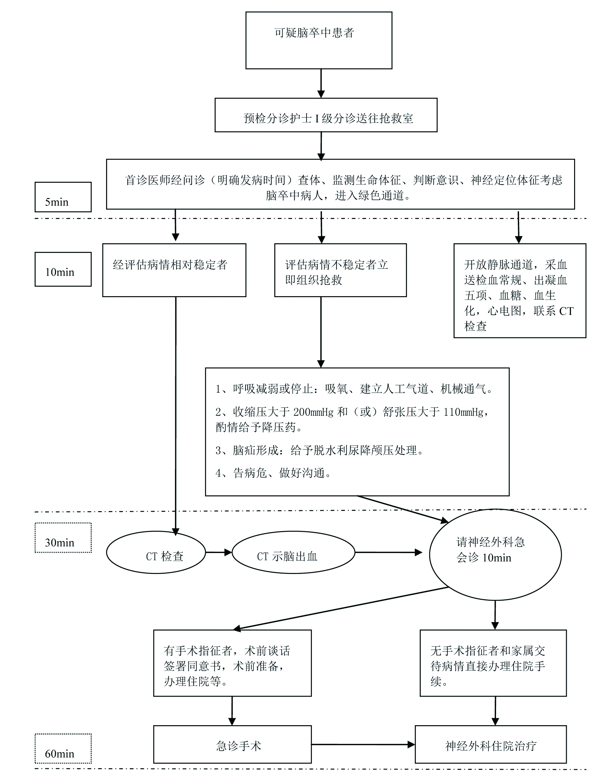 图 1 脑出血急诊绿色通道抢救流程图 |