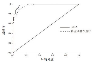 图 4 胸痛患者降主动脉直径、rDA预测Stanford B型主动脉夹层的ROC曲线 Figure 4 ROC curve of descending aorta diameter and rDA in predicting Stanford type B aortic dissection in chest pain patients |