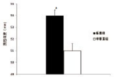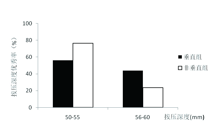 垂直组按压深度与非垂直组比较,aP < 0.05 图 3 两组按压深度比较 |