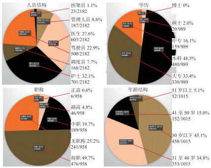 3.4 人力资源院前急救医务人员以本科/大专学历为主,高学历医务人员数量较少;有些调度不具备医疗背景,甚至同时承担医院总值班、咨询、急诊值班等其他任务;出诊人员不固定,来自急诊值班、专科轮转、新近人员轮训等;担架员配备匮乏,仅靠医务人员,难以满足当前高强度高楼层急救;工作人员待遇低、流动性大、积极性不高。