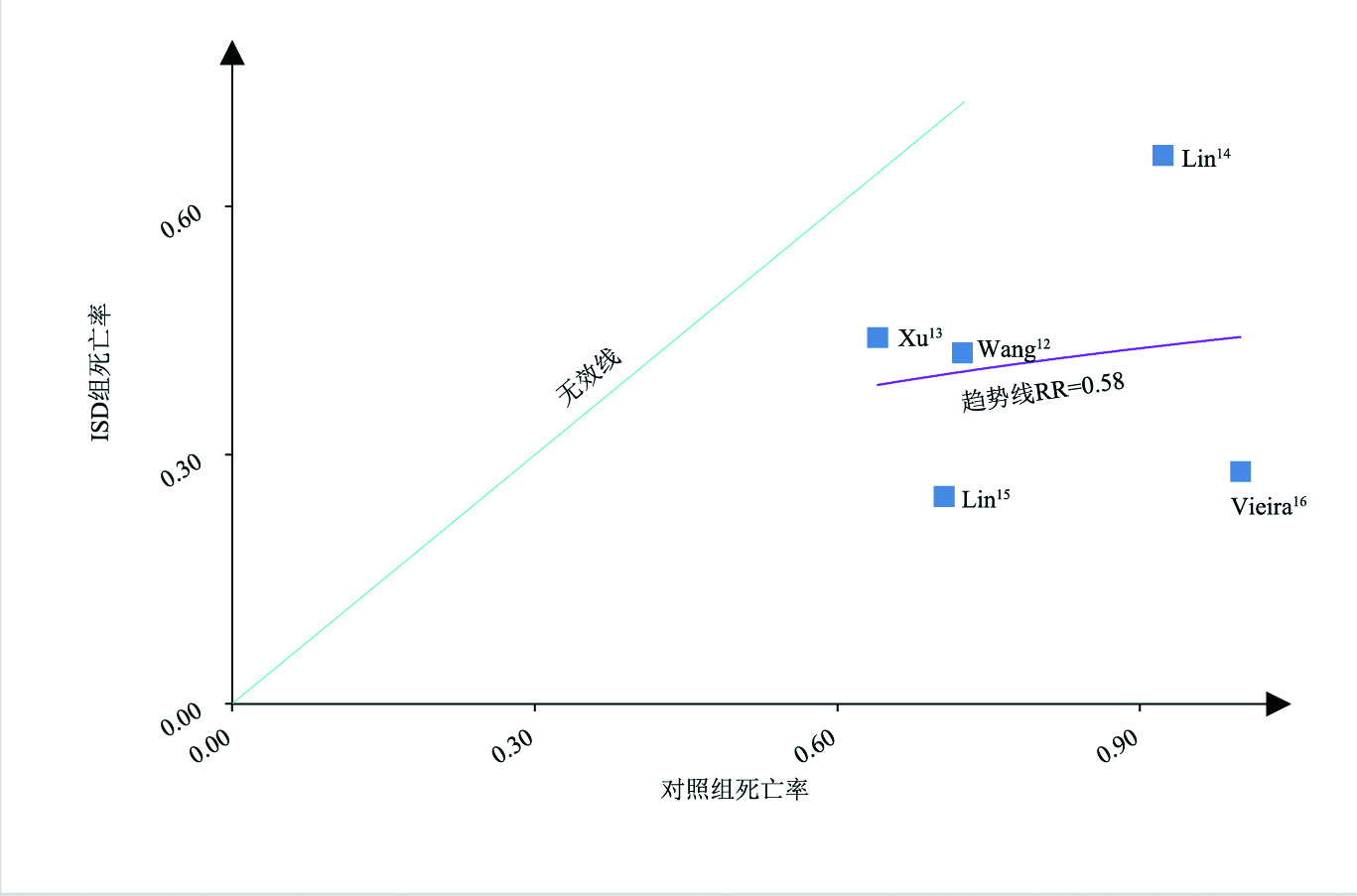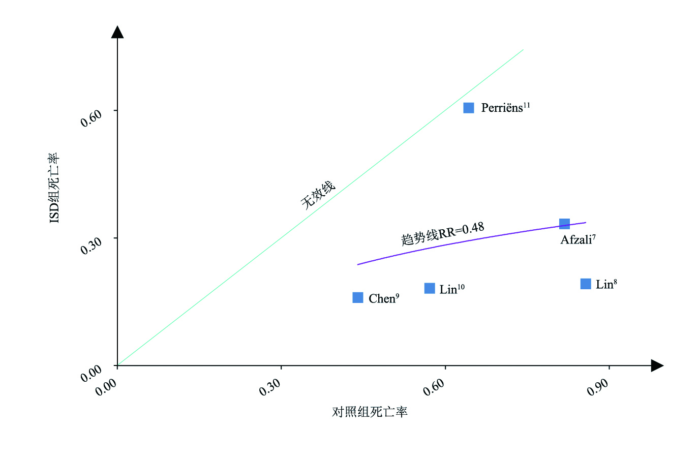 病死率 RCT M-H随机效应模型 36/105(34.3) 51/85(60.0) 0.48 (0.28~0.82) 0.007 55