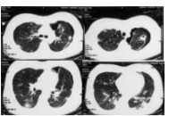 这例患者的疾病过程以及胸部CT表现符合上述改变,“毁损的肺组织”是肺气囊肿,后期随着病情的好转,肺组织基本恢复正常。