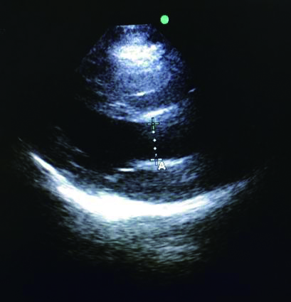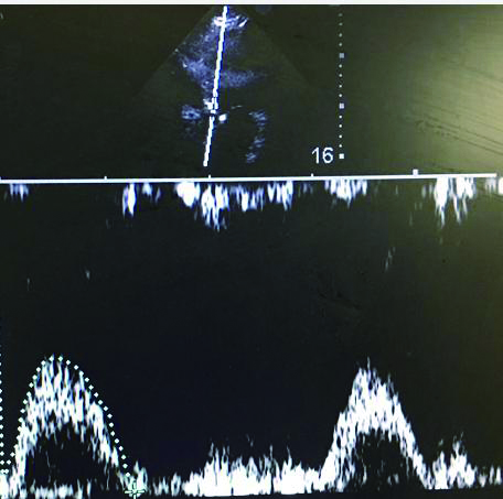 图 4 心尖部五腔心流速时间指数测量 Figure 4 The measurement of apical velocity time index at five-cavity flow