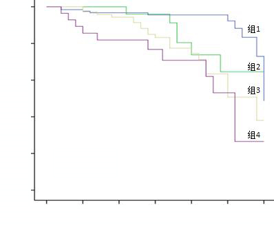 比较四个亚组患者的生存率,差异有统计学意义,组1 > 组2 > 组3 > 组4(P < 0.01),见图 2