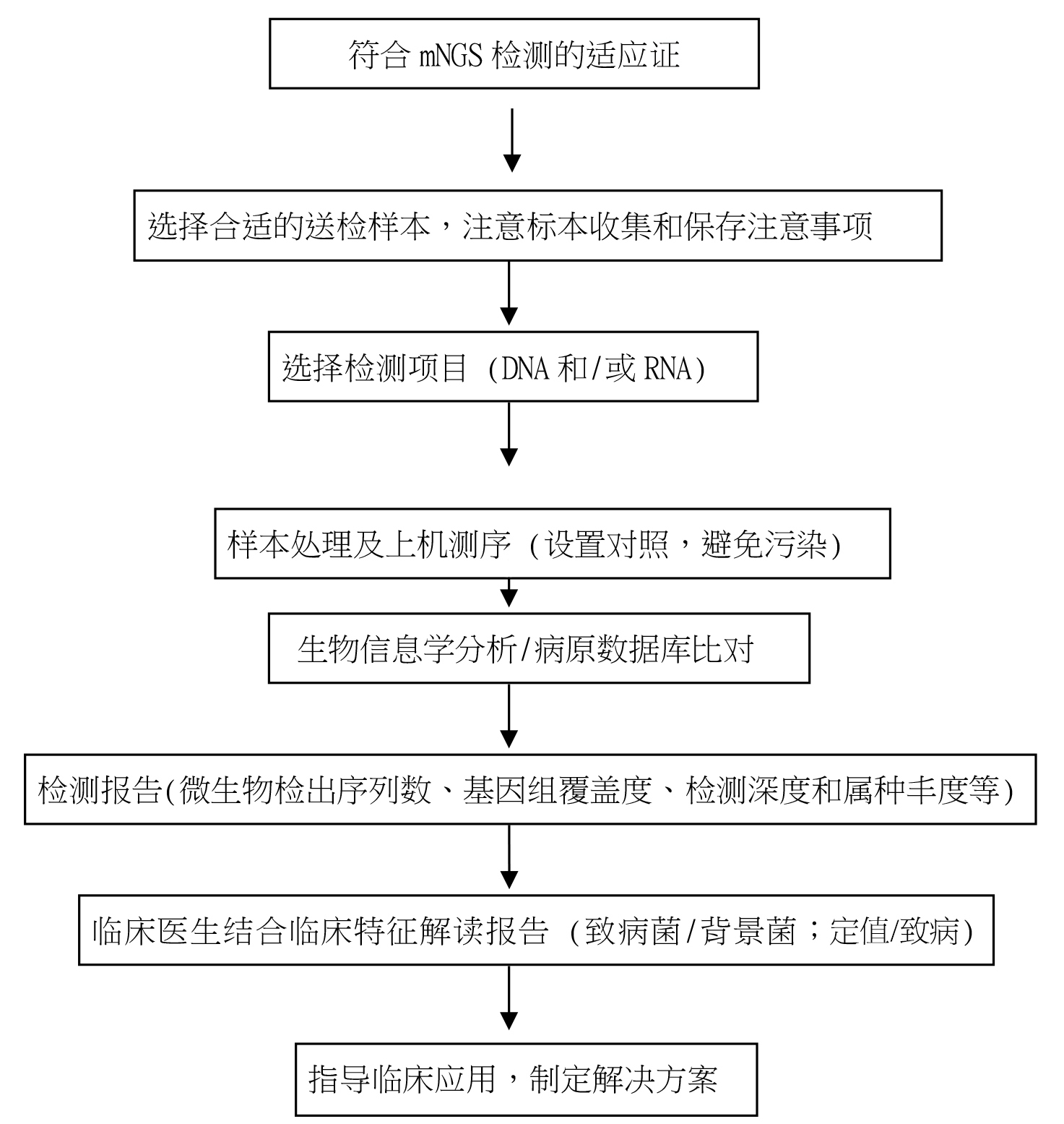 (6)对于严重感染、生命体征不稳定的患者,在早期病原体不明确的情况下,进行经验性的广谱抗菌药物治疗,一旦mNGS或者传统病原学获得致病病原体后,针对病原体进行精准治疗,但要密切随访患者的临床表现和治疗效果。