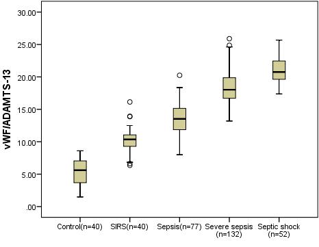 本研究证实了endocan、vWF、ADAMTS-13、vWF/ADAMTS-13的水平对于急诊抢救室脓毒症患者具有一定的危险分层价值,尤其是vWF/ADAMTS-13,高水平的vWF/ADAMTS-13是脓毒症病情危重的标志。