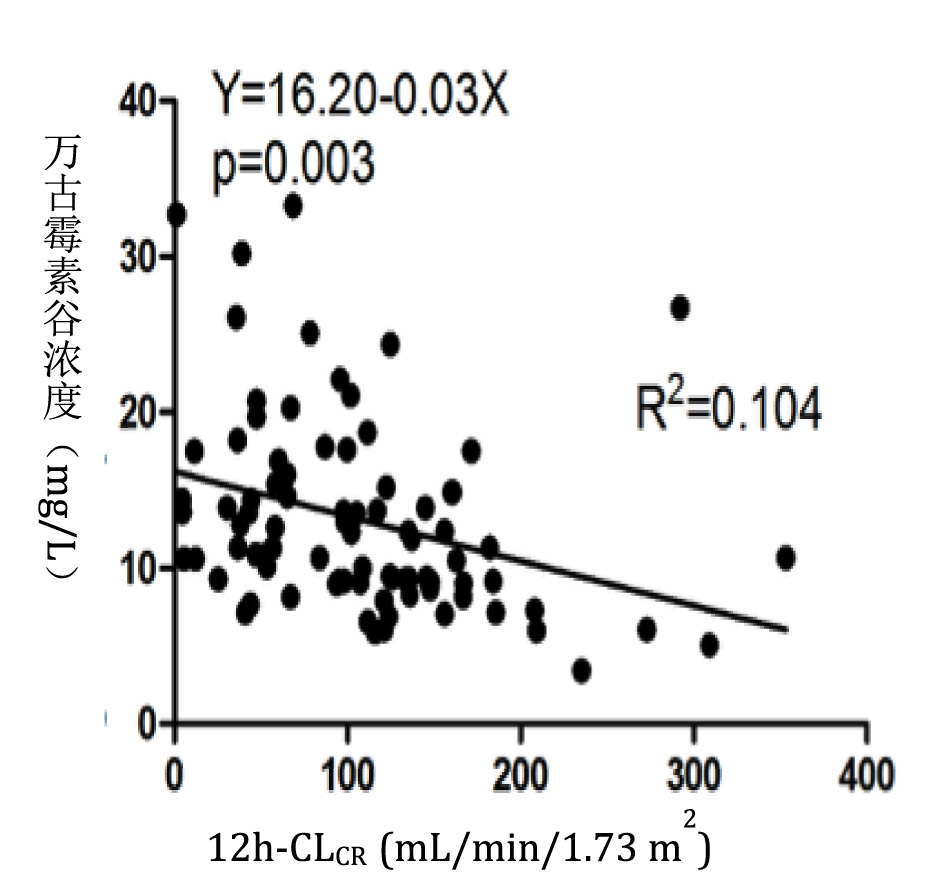 图 4 万古霉素血药浓度与肌酐清除率相关性分析 |