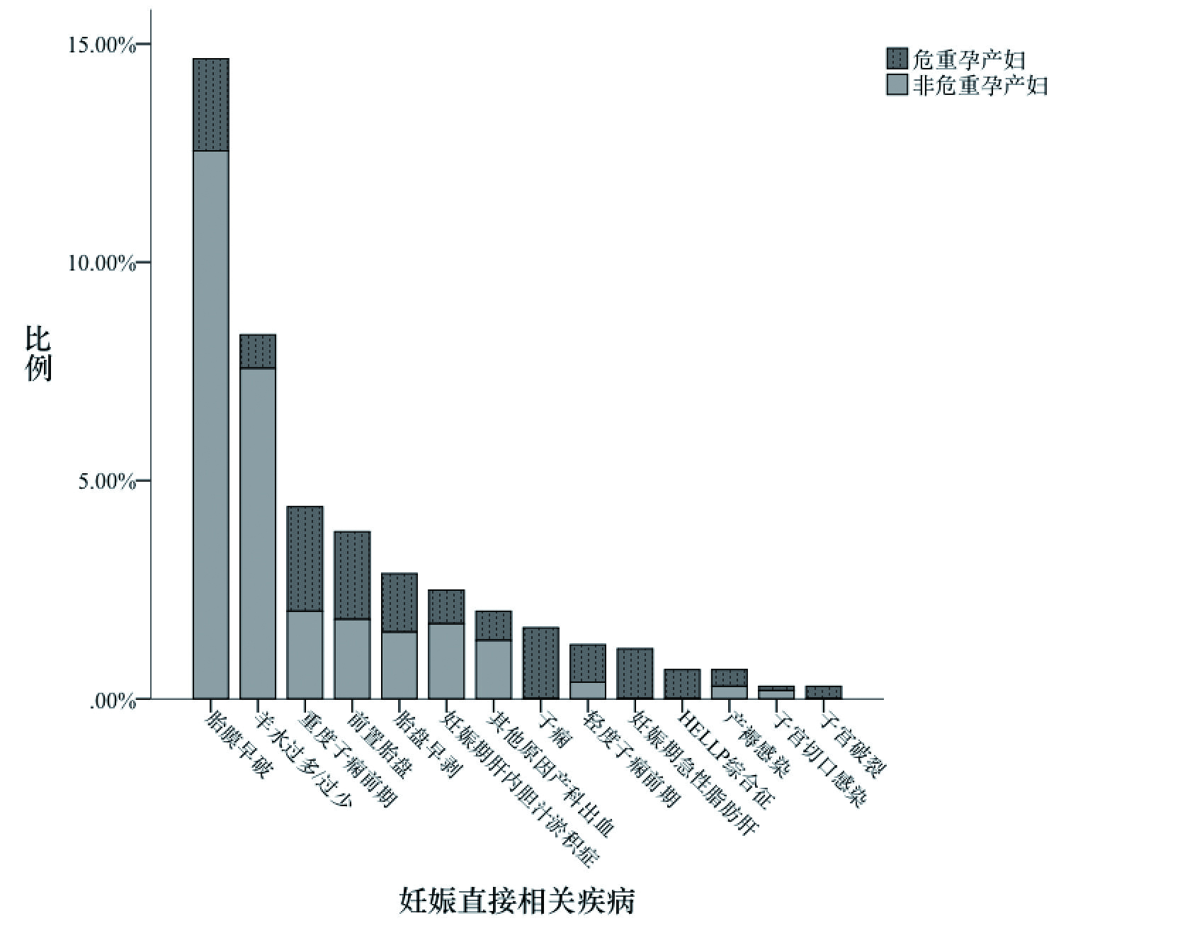 综上所述,杭州危重孕产妇救治中心的孕产妇留抢最主要的非妊娠直接相关的主要病因为消化系统疾病、呼吸系统疾病和内分泌结缔组织疾病,妊娠直接相关疾病最主要的原因是胎膜早破、羊水过多/过少和重度子痫前期。高龄、低学历、经产以及合并各种内外科疾病是影响危重孕产妇发生的独立危险因素。