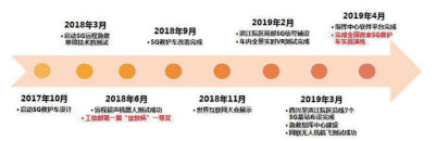 1.6 研究进程2017年10月正式启动5G救护车的设计;2018年3月启动5G远程急救各单项技术的测试,包括5G远程超声机器人测试、5G全景实时VR测试、网联无人机航飞试验等模块;6月获得工信部绽放杯5G应用大赛一等奖;9月完成5G救护车的改装,11月在世界互联网大会上展示。2019年2月在浙大二院滨江院区架设局部5G信号,同期车内5G全景实时VR测试成功;3月完成杭州滨江区西兴社区卫生服务中心至浙大二院滨江院区沿线7个5G基站的铺设;4月完成指挥中心平台建设,4月8日在浙大二院滨江院区与西兴社区卫生服务中心之间的城市道路上成功完成全国首例全程5G网络支持的救护车实战演练,建设进度见图 1。