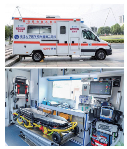 图 3 浙大二院5G救护车外观与内部图 Fig 3 Appearance and interior diagram of 5G ambulance of SAHZU |