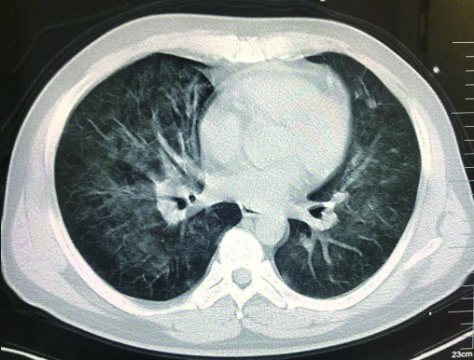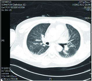 图 1 3月10日胸部CT |
