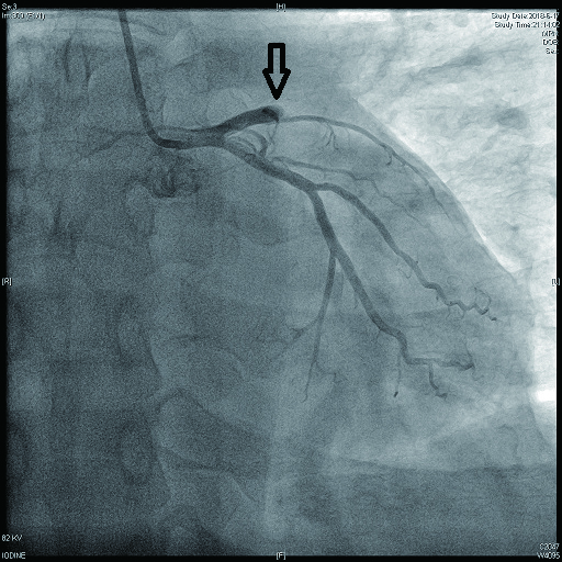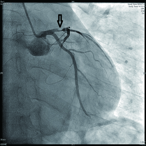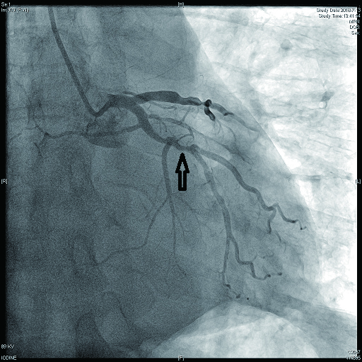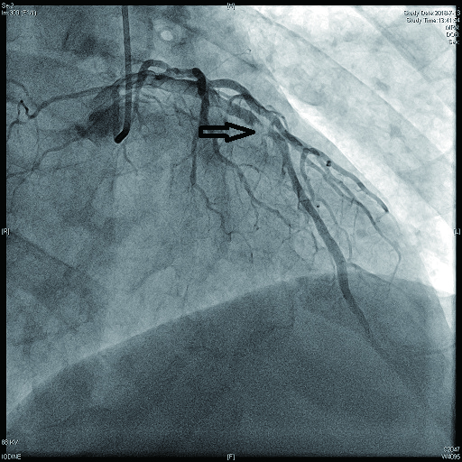 De winter综合征表现为T波高尖,临床上应注意与急性心肌梗死超急性期、高钾等疾病相鉴别。有学者认为,De winter综合征不会演变成STEMI,与STEMI超急性期的鉴别关键在于密切监测心电图,如果是De winter综合征,其ST段不会抬高,而急性心肌梗死超急性期心电图会有动态演变,T波高尖之后会逐渐出现ST段抬高,R波下降甚至丢失,病理性Q波形成等特点,但这种观点与本研究观察到的情况不符,本文中病例1、病例5和病例6都观察到心电图演变为STEMI。临床上观察不到的原因可能是:⑴患者发病时间短,心电图还来不及演变为ST段抬高,就已行冠脉造影及支架植入开通血管。⑵ST段抬高可能是一过性的,开通血管后ST段又回落至基线。只有密切监测心电图,才可能真正发现问题。至于与高钾导致的T波高尖的鉴别,急查血清钾即可明确。De winter等[1]发现心电图表现为ST段上斜型压低,T波高尖的患者,冠脉造影均提示前降支近段闭塞,且为单支血管病变。本文中观察到,3例为前降支近段严重病变,1例为第一对角支闭塞,3例为前降支中段闭塞,2例合并多支血管病变,5例为单支血管病变。亦有研究发现,心电图表现为De winter综合征,但冠脉造影却提示左主干闭塞[8]。可见,本文的发现及Murat等[8]的发现提示De winter综合征的靶病变不一定局限于LAD近段。另外,从本文观察到的情况,患者发病年龄都相对年轻,且均为男性,2例合并高脂血症,与以往文献报道[9]相符。