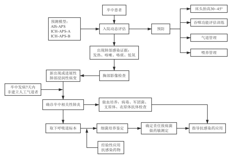 图 1 卒中相关性肺炎的预防、诊疗流程 |