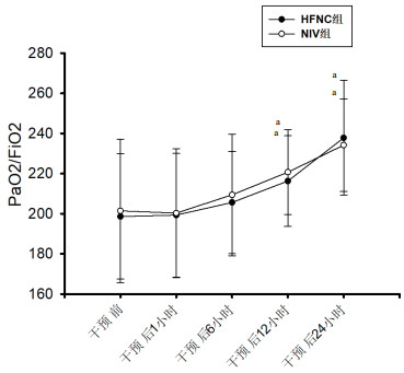 (2)干预措施:在原发病常规治疗基础上,分别予HFNC或NIV呼吸支持。