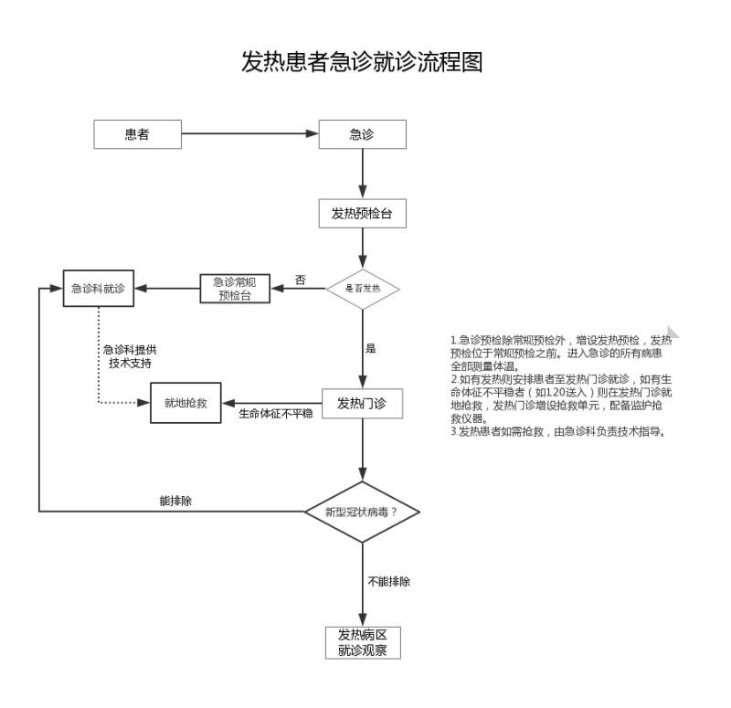 (6)发热患者急诊预检就诊流程见图 1。