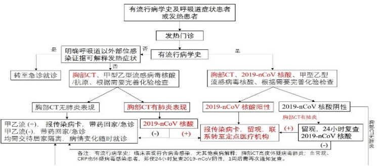图 2 急诊发热门诊新型冠状病毒感染筛查流程 Fig 2 Screening process for novel coronavirus infection in fever clinic |