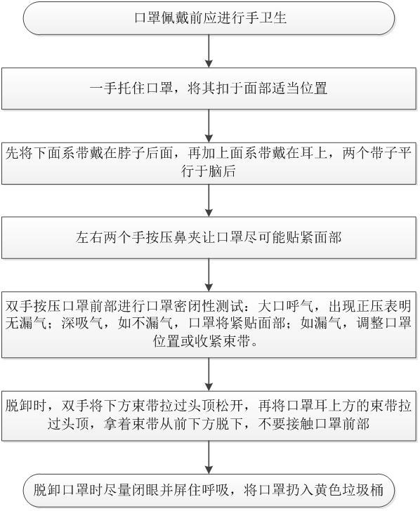 图 2 医用防护口罩佩戴与脱卸流程 |