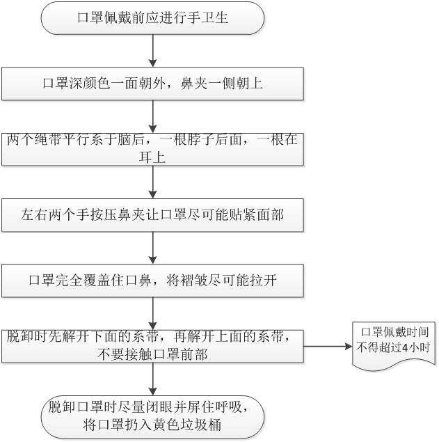 图 3 医用外科口罩佩戴与脱卸流程 |