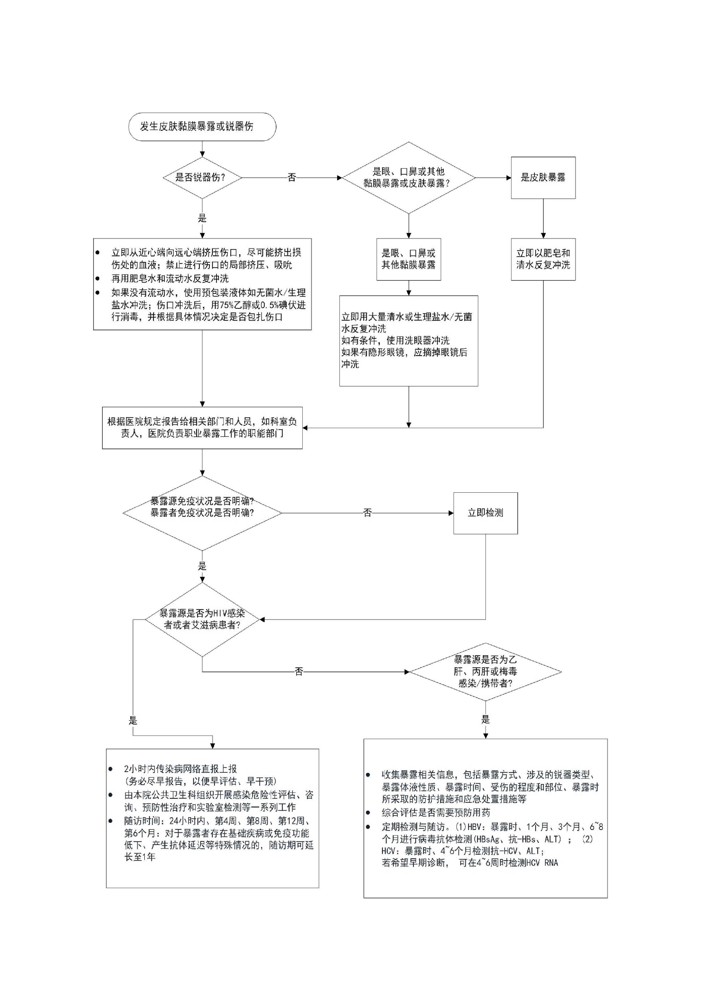 (2)发生职业暴露及时处置(见图 6:医务人员职业暴露处置标准操作规程)。