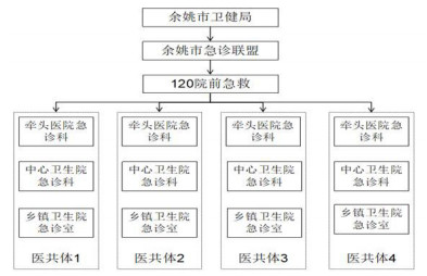 在县域医共体建设中,专科能力的提升是各医共体成员单位医疗水平的同质化、规范化、信息化必须面临的首要问题,余姚市卫生健康局鼓励有能力的医共体牵头医院作为核心医院,牵头成立专科联盟。余姚市人民医院急诊科作为核心医院,在卫健局支持下牵头成立了余姚市县域急诊联盟,探索适应新时代要求及县情的“社会急救—院前急救—急诊急救大平台多学科协作救治—EICU”四位一体的县域全流程急诊医疗服务体系(EMSS)新模式;并以建设五大中心为契机,以创伤中心、胸痛中心及卒中中心为抓手,建设区域内急诊急救大平台,并以同质化、规范化、信息化为要求,构建余姚市医共体急救医疗服务体系,即余姚市急救医疗保障体系。