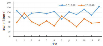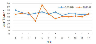 2.2 能力建设初见成效将能力建设前(2018年1月—2018年12月)为对照组,能力建设后(2019年1月—2019年12月)为观察组,比较急性心肌梗死治疗时间指标(表 1)、急性缺血性脑卒中治疗时间指标(表 2)、急诊创伤手术45 min达成率(表 3),提升能力建设后各指标明显改善提高,两组多项指标比较,差异有统计学意义(P < 0.05)。两组急性心肌梗死入院-球囊扩张时间(DtoB)比较,差异有统计学意义(P < 0.01),最短DtoB时间18 min,急诊介入治疗绕行从0例提升到42例。两组急性脑梗死入院-溶栓时间(DNT)比较,差异有统计学意义(P < 0.01),CT室溶栓治疗已经开始开展。创伤中心建设后,创伤患者提出输血申请到开始输血时间缩短至40 min以内、建立人工气道时间均在5 min内,创伤患者在急诊抢救时间明显缩短,创伤中心建设前后急诊创伤45 min达成率比较差异有统计学意义(P < 0.01)。