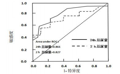 | 图 1 FST后2 h总尿量和24 h总尿量的ROC曲线 |