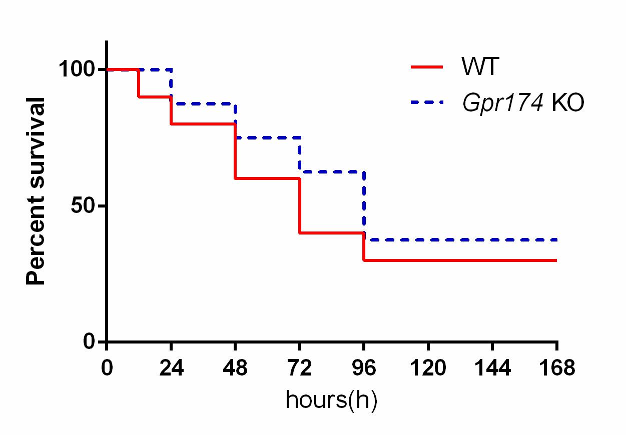 图 2 Gpr174对CLP小鼠生存率的影响 Fig 2 Effect of Gpr174 on the survival of rats with CLP-induced sepsis |