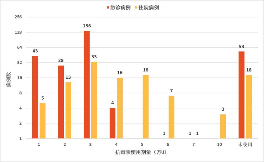 图 1 抗毒素使用剂量分布图 Fig 1 Antitoxin dose distribution |