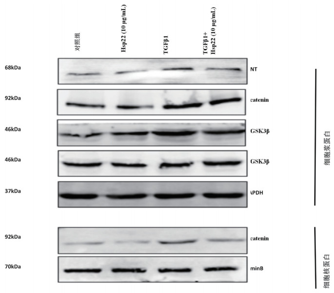 图 5 Hsp22对WNT/β-catenin信号通路蛋白表达的影响 Fig 5 Effect of Hsp22 on WNT/β-catenin signaling |