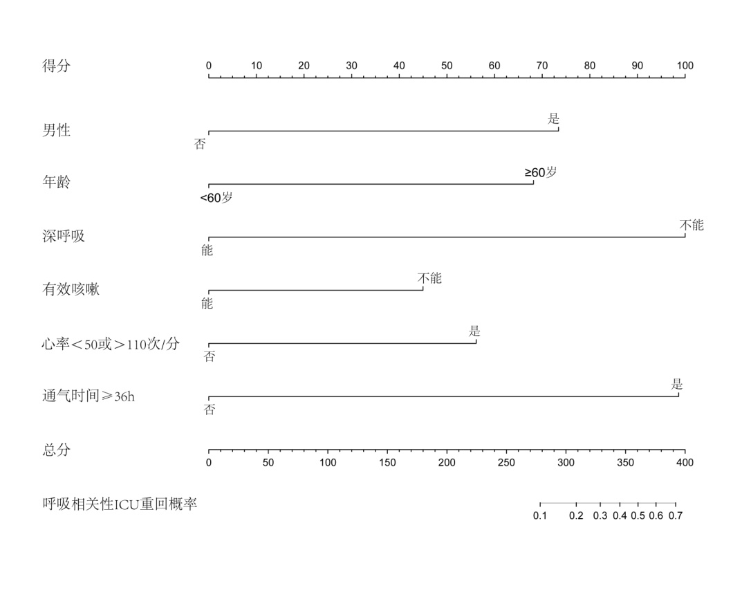 图 4 呼吸相关性ICU重回风险预测列线图 |