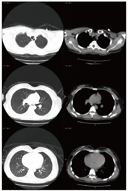 图 1 患者入抢救室时肺部CT影像 |