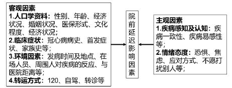 2.2 主观因素近几年国外越来越多学者开始关注患者主观情绪等心理活动对PHD的影响。定性研究表明,情绪反应可能会影响患者的院前行为[32-34]。焦虑会引起决策延迟,当症状出现时,随之出现焦虑,症状越严重焦虑感越明显,并进一步导致决策延迟[35]。但Schmidt和Borsch[36]的定量研究显示焦虑对决策延迟无影响,可能是因为无针对AMI患者情绪的调查工具可以使用。主观情绪与患者延迟行为间的具体关系还未被确定,有必要对情绪反应进行深入剖析,以了解情绪对延迟就医的影响。这就需要运用量性研究大样本调查,探索情绪对患者延迟的影响。