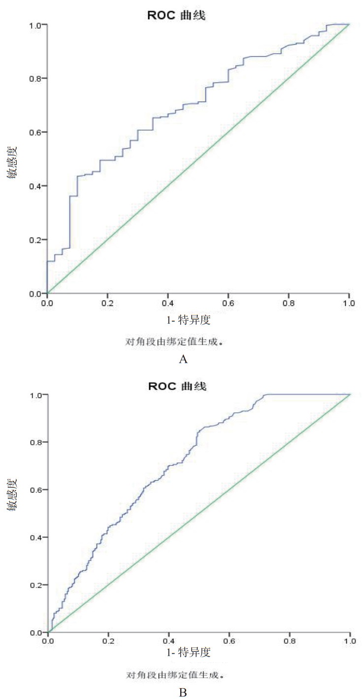 PCT为降钙素原;GNB为革兰阴性菌;GPB为革兰阳性菌;ROC为受试者工作特征曲线 图 3 PCT诊断GNB菌血症与念珠菌血症(A)、GNB菌血症与GPB菌血症(B)的ROC曲线 Fig 3 ROC curve of PCT in differential diagnosis of bacteremia due to GNB infection and candidemia (A), bacteremia due to GNB and GPB infection (B) |