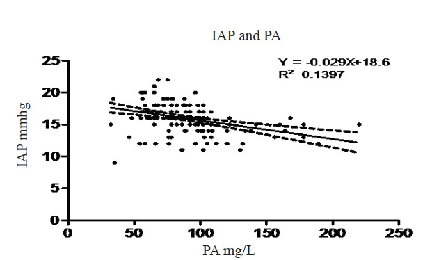 IAP与PA的相关性分析,R2为0.139,传统指标IAP与PA相关性小,见图 4。