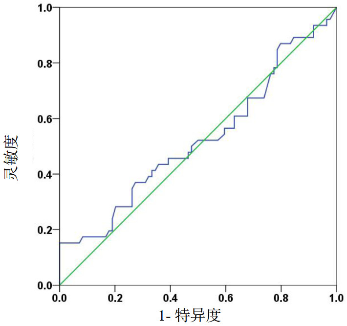 血浆铁预测脓毒症患者28 d死亡的工作曲线下面积(AUC)为0.524(95%CI:0.416~0.631,P=0.656,图 1),提示血浆铁不能预测脓毒症患者28 d死亡。