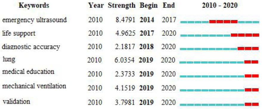 图 5 PoCUS研究领域突增关键词分析图谱 |
