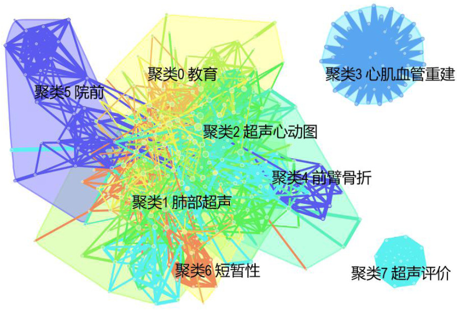 图 6 2010至2020年Web of Science中PoCUS研究领域文献共被引网络前8位大型聚类图 |
