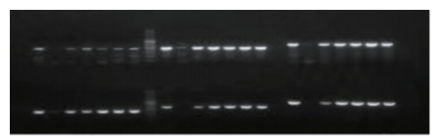 1.2 方法 1.2.1 基因组DNA提取对纳入的研究对象采集外周静脉血2 mL(2.5%枸椽酸钠溶液抗凝)并封存于EDTA抗凝管中,使用血液基因组DNA提取试剂盒(SK8224)从血液样本中提取基因组DNA,对提取后的DNA进行PCR扩增,利用2%琼脂糖凝胶电泳分离PCR扩增产物,并运用紫外分光光度计分析DNA样本的纯度和浓度。电泳图见图 1。