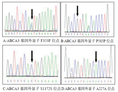 有研究证实,ABCA3 exon10区域rsl3332514(F353F)位点存在单个碱基点突变C > T,等位基因T可能是RDS的易感基因之一[24],上述研究均证明ABCA3基因突变可能是RDS发生的遗传易感因素。