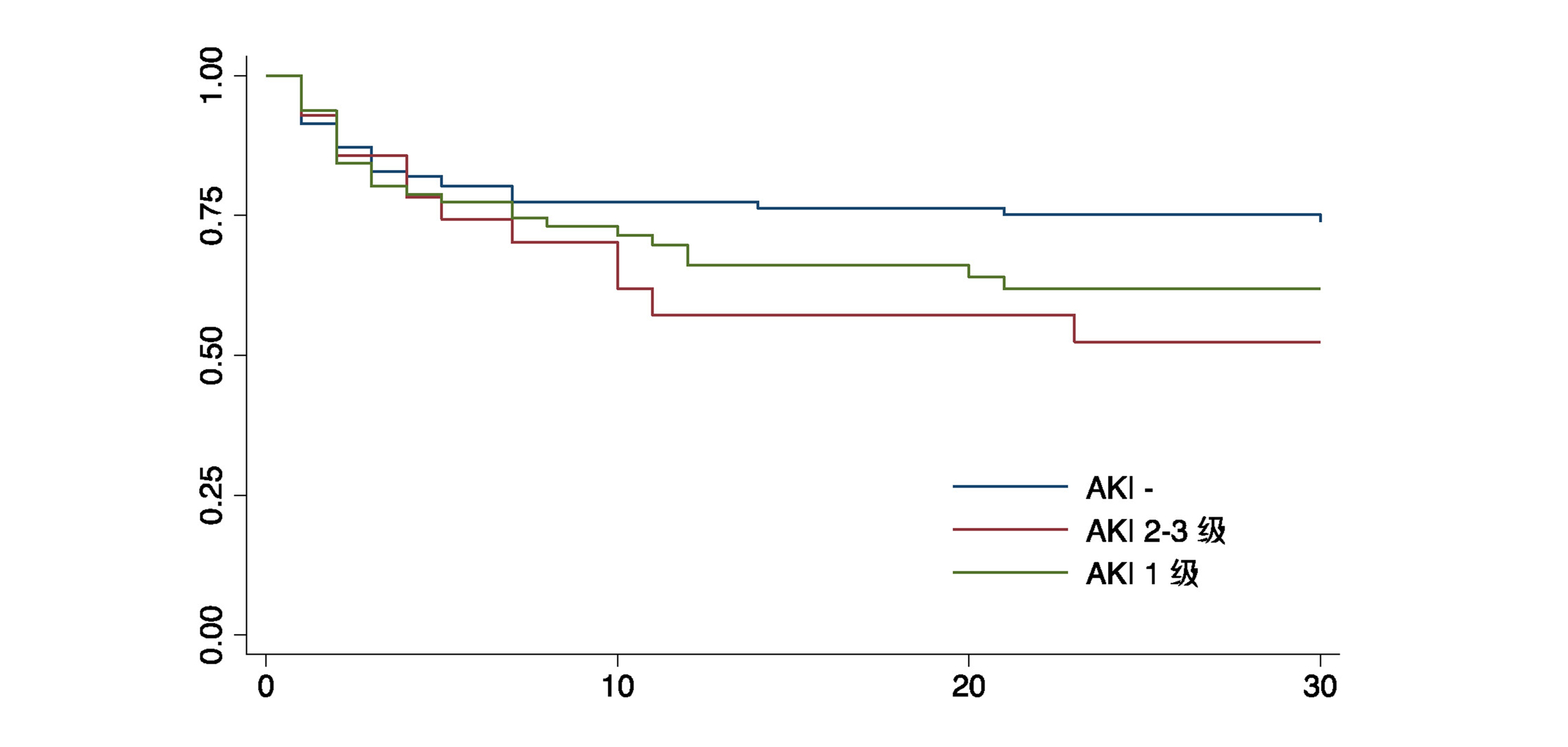 | 图 2 AKI患者30 d生存曲线 Fig 2 30-day survival curve of patients with AKI |