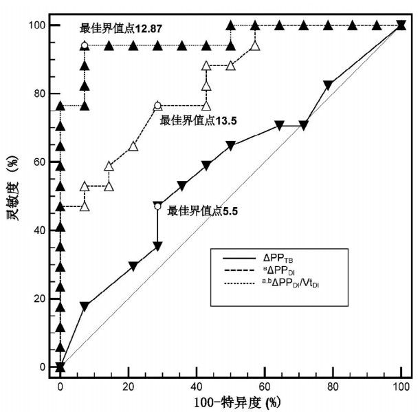 指标 | ΔPPTB (%,平静呼吸时ΔPP) | ΔPPDI (%,深吸气时ΔPP) | ΔPPDI/VtDI (%/L,VtDI校正深吸气时ΔPP) |