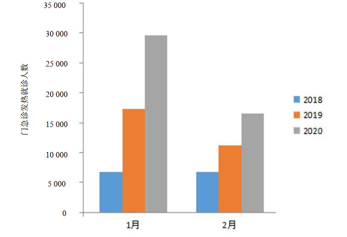 | 图 1 2018—2020年1、2月门急诊发热就诊情况 |